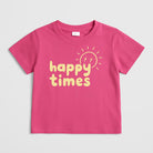 Questa adorabile t-shirt rosa è perfetta per le piccole sorridenti! Realizzata in morbido cotone, presenta una simpatica stampa "happy times" accompagnata da un sole sorridente che porta allegria. Con il suo taglio comodo e maniche corte, è ideale per le avventure estive o per un look giocoso e rilassato. Nonostante sia un capo usato, si presenta in ottime condizioni, pronta a far brillare il guardaroba della tua bimba! Un must-have per ogni piccola amante della felicità!