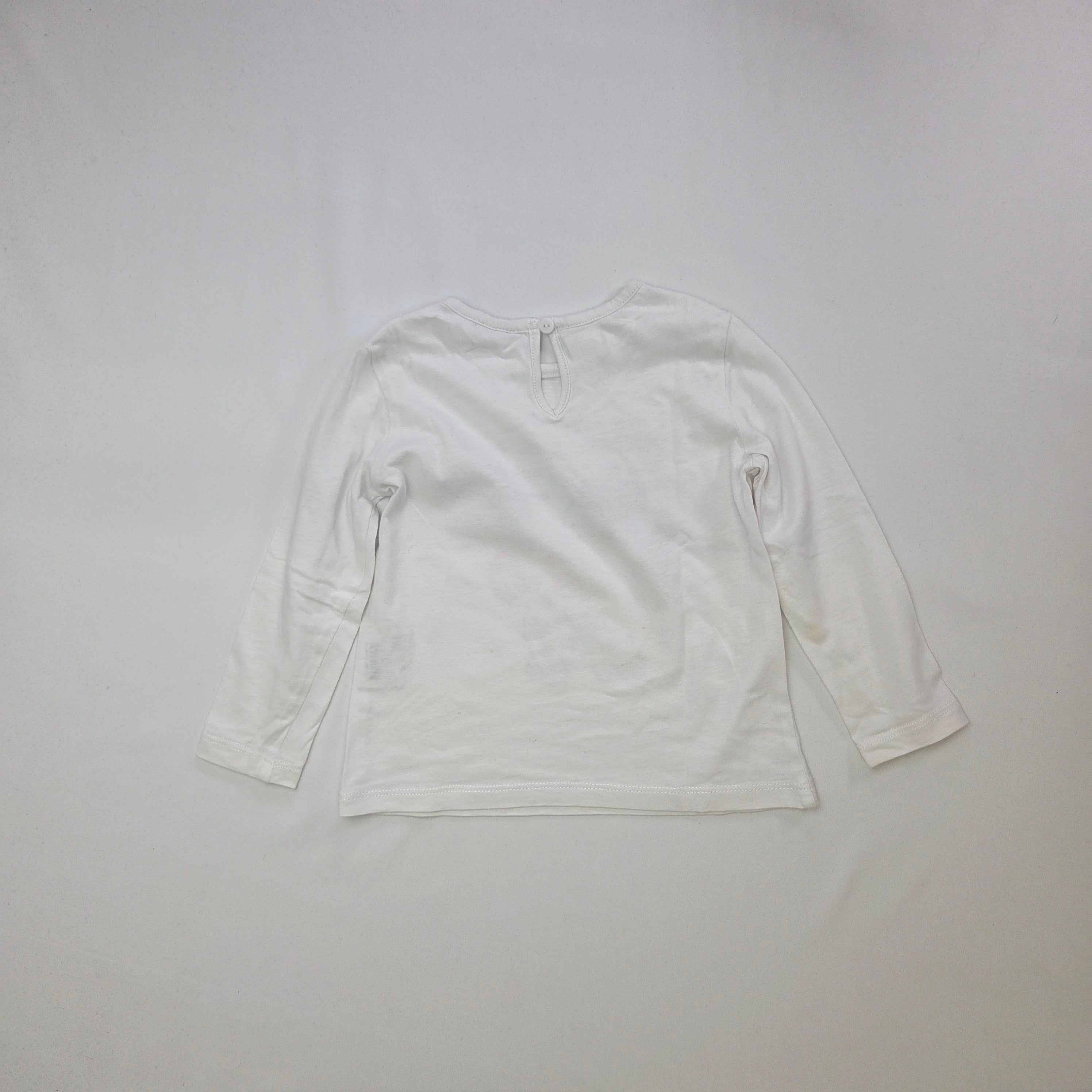 Questa adorabile maglietta a maniche lunghe è perfetta per le piccole sognatrici! Realizzata in cotone morbido, presenta una vivace stampa di un unicorno dai colori pastello. La scritta giocosa "Il mio unicorno è morbidoso, dolcissimo e scintillante" aggiunge un tocco di magia al look. Il taglio comodo la rende ideale per ogni avventura, dalle passeggiate nel parco ai pomeriggi di gioco. Anche se è un capo usato, è in ottime condizioni e pronta a far brillare il guardaroba della tua bimba! Un capo irresistibile per chi ama sognare a occhi aperti!