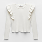 Questa deliziosa maglietta a maniche lunghe è perfetta per le piccole che amano esprimere il loro stile! Realizzata in un morbido tessuto a coste, il suo colore neutro la rende facile da abbinare a qualsiasi pantalone o gonna. Le maniche con volant aggiungono un tocco di femminilità e sono ideali per giochi e avventure. Nonostante sia un capo usato, si presenta in ottime condizioni, pronta per nuove giornate di divertimento. Questa maglietta è una scelta adorabile per ogni giovane trendsetter!