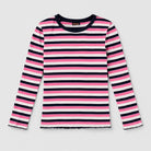Questa adorabile maglietta a maniche lunghe è perfetta per le piccole alla moda! Caratterizzata da strisce colorate in rosa, bianco e blu navy, aggiunge un tocco vivace a qualsiasi outfit. Il taglio comodo e la leggera ondulazione sul fondo la rendono ideale per giochi e avventure quotidiane. Realizzata in un tessuto morbido, offre comfort e libertà di movimento. Anche se usata, si presenta in ottime condizioni, pronta per essere indossata da una piccola esploratrice! Un classico intramontabile da non lasciarsi scappare!