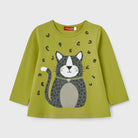Questa adorabile maglietta a maniche lunghe è perfetta per i piccoli amanti dei gatti! Realizzata in un cotone morbido di un fresco verde oliva, presenta un simpatico motivo con un felino dalle caratteristiche irresistibili e dettagli leopardati. Il design divertente e giocoso, arricchito da una piccola coda bianca, cattura l'attenzione e aggiunge un tocco di allegria al guardaroba. Ideale per le avventure quotidiane o per i momenti di relax, questa maglietta è in buone condizioni e pronta per essere indossata da un piccolo esploratore!