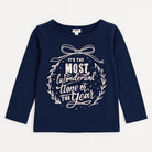 Questa adorabile maglietta a maniche lunghe è un vero incanto per i piccoli! Realizzata in morbido cotone, il suo profondo blu scuro è perfetto per il periodo invernale. Sul fronte, la scritta “It’s the Most Wonderful Time of the Year” è adornata da un elegante motivo di un nastro e rami, evocando lo spirito festivo. Con un taglio comodo e maniche lunghe, è ideale per tenere al caldo i bambini durante le giornate più fresche. Nonostante sia un capo usato, si presenta in ottime condizioni, pronta a rendere felice chi lo indossa! Un must-have per le piccole feste e le celebrazioni!