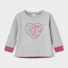 Questa adorabile maglietta grigia con maniche lunghe è perfetta per le piccole appassionate di musica! Presenta un simpatico cuore con la scritta "DRUMS" scintillante, rendendola ideale per esprimere la loro personalità vivace. I dettagli in rosa sulla parte inferiore e sui polsini aggiungono un tocco di colore e allegria. Realizzata in un tessuto morbido e confortevole, è ideale per giornate di gioco e avventure. Nonostante sia usata, la maglietta è in ottime condizioni e pronta per essere indossata con stile dalle piccole rockstar!