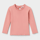 Questa dolce maglietta a maniche lunghe in un delicato rosa pesca è un vero tesoro per il guardaroba delle piccole! Realizzata in morbido tessuto a costine, garantisce comfort e libertà di movimento. La particolare lavorazione con scollatura arricchita da un raffinato bordino rende questo capo ancora più speciale. Adatta per ogni occasione, perfetta da abbinare a jeans o gonne, questa maglia usata è ben tenuta e pronta per nuove avventure. Un must-have per le piccole amanti della moda che vogliono sentirsi sempre chic!