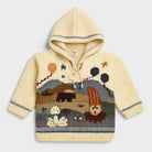 Questo adorabile maglione con cappuccio è un caldo abbraccio per i tuoi piccoli! Realizzato in morbido filato, presenta una deliziosa lavorazione a maglia con un vivace motivo dipinto a mano che raffigura un paesaggio incantevole, completo di montagne, palloncini e simpatici animali. Le tonalità pastello di giallo, blu e marrone offrono un tocco giocoso e colorato, perfetto per le giornate fresche. Le maniche lunghe e il taglio comodo garantiscono libertà di movimento e calore. Un capo unico e scrupolosamente curato, ideale per i piccoli amanti della natura e dello stile!