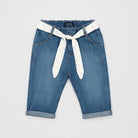 Questi adorabili pantaloni in denim sono l’alleato perfetto per ogni piccola esploratrice! Con una comoda vita elastica e un delizioso cinturino a fantasia, garantiscono comfort e stile in ogni occasione. Il tessuto denim resistente, ma morbido, consente libertà di movimento per le avventure quotidiane. I risvolti alle caviglie aggiungono un tocco trendy, rendendoli facili da abbinare con t-shirt colorate o felpe. Nonostante siano usati, si presentano in ottime condizioni, pronti per essere indossati da una piccola fashionista che ama divertirsi!