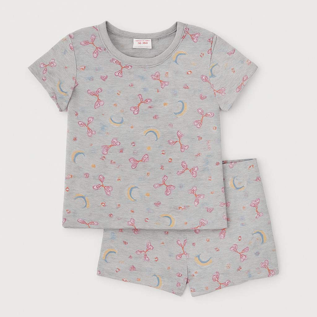 Questo adorabile completo di t-shirt e pantaloni corti è perfetto per le giornate di sole! Realizzato in un morbido cotone grigio, la t-shirt presenta un divertente motivo colorato con arcobaleni e fiori che porterà un sorriso sul volto della tua piccola. Le maniche corte e il taglio leggero garantiscono freschezza e libertà di movimento, ideali per avventure estive.