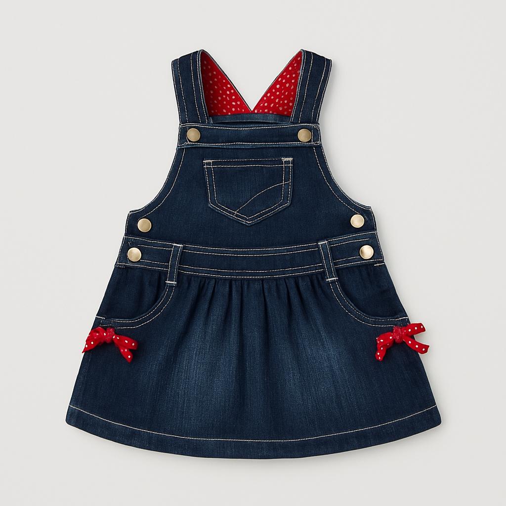 Questo adorabile salopette in denim è perfetta per le piccole trendsetter! Il suo colore blu scuro è abbinato a un vivace rivestimento a pois rossi che aggiunge un tocco di allegria. Dotata di spalline incrociate e chiusure a bottoni, offre un design pratico e comodo per la tua bimba. Le tasche laterali, decorate da eleganti fiocchi rossi, rendono questo capo non solo stiloso ma anche funzionale. Nonostante sia un articolo usato, si presenta in ottime condizioni, pronto per accompagnare ogni avventura estiva delle piccole esploratrici! Questo pezzo è un must-have per un look fresco e alla moda!