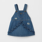 Questo adorabile vestitino in denim è perfetto per far brillare il guardaroba della tua piccola! Caratterizzato da una comoda scollatura a spalla e una gonna arricchita da deliziosi volant, aggiunge un tocco di charme a ogni outfit. Le piccole imperfezioni del denim e le cuciture decorative rendono questo capo unico e alla moda. Ideale per le giornate di sole, può essere abbinato a una T-shirt,colorata e sandali. Nonostante sia un pezzo usato, è in buone condizioni e pronto a portare sorrisi e avventure!