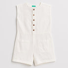 Questo adorabile salopette bianca è l'ideale per le piccole fashioniste che amano l'eleganza e il comfort! Realizzata in un morbido tessuto di lino, è leggera e traspirante, perfetta per le calde giornate estive. Le splendide nozze di bottoni in legno donano un tocco rustico e chic, mentre le pratiche tasche anteriori offrono spazio per piccoli tesori e segreti. Nonostante sia un capo usato, si presenta in ottime condizioni, pronto a vestire la tua bimba con stile. Un'aggiunta versatile per il guardaroba estivo delle piccole!
