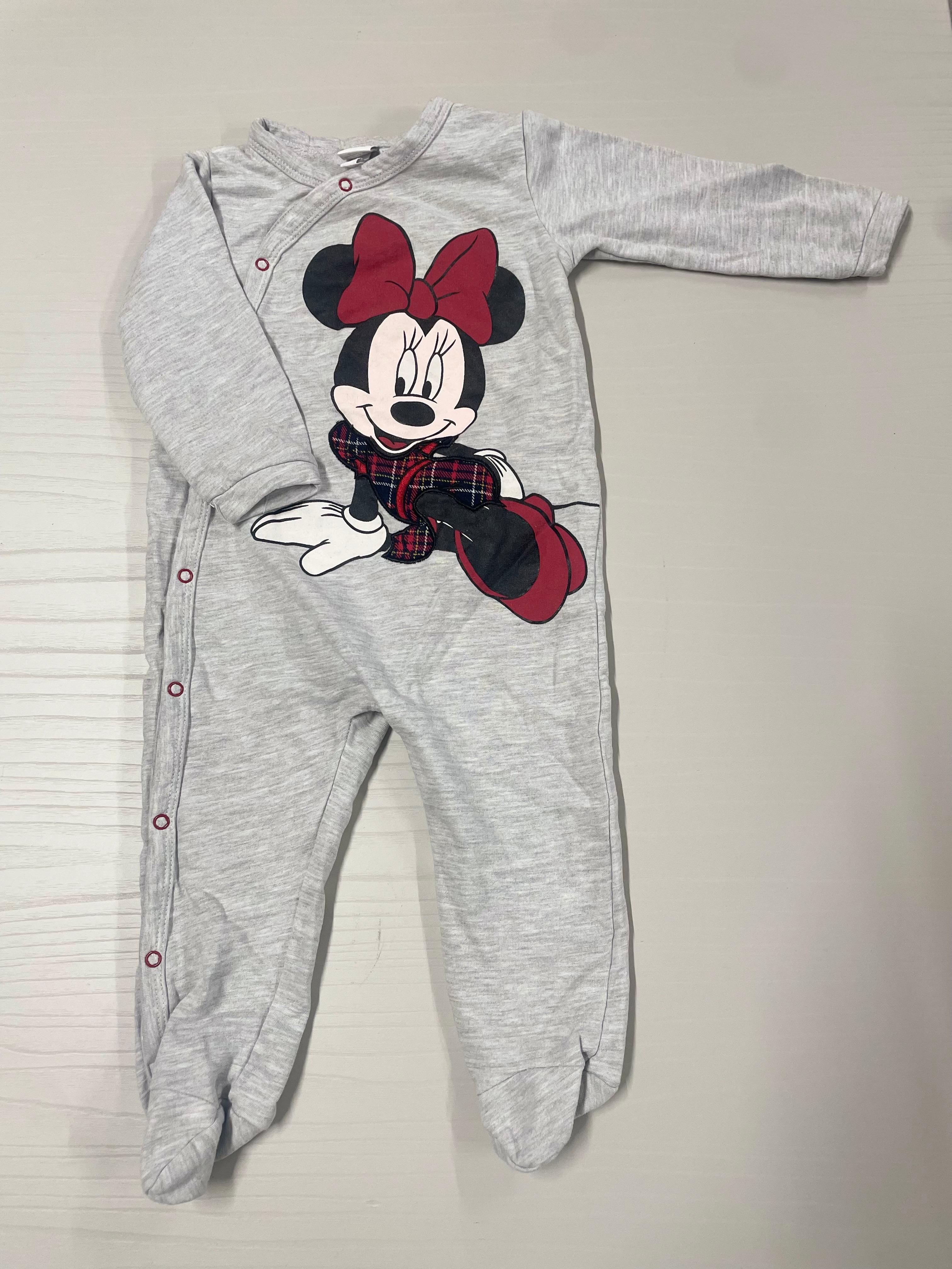 Questo adorabile tutù di Minnie Mouse è l'ideale per tenere al calduccio la tua piccola durante le giornate fredde! Realizzato in morbido cotone grigio, presenta la dolce Minnie con il suo fiocco rosso e un grazioso utilizzo di tessuto a quadri. Le pratiche bottoniere frontali e la chiusura sul fondo rendono il cambio facile e veloce. Le maniche lunghe e i pantaloni integrati garantiscono comfort e libertà di movimento, perfetto per coccole e giochi! Nonostante sia un capo usato, è in ottime condizioni e pronto a diventare un pezzo amato del guardaroba della tua bimba!