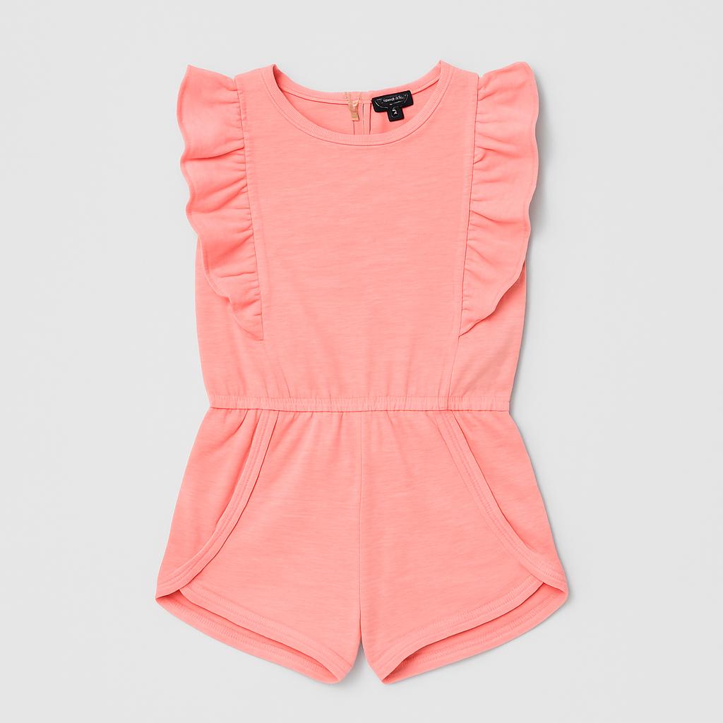 Questo adorabile completo a maniche corte in un vivace colore corallo è perfetto per le piccole esploratrici! Realizzato in un morbido tessuto, offre comfort e libertà di movimento. Le deliziose rouches sulle spalle donano un tocco di eleganza e vitalità, rendendo questo capo ideale per le giornate estive. Con il suo design pratico e giocoso, è perfetto per le avventure all'aperto, i giochi con gli amici o un pomeriggio al parco. Nonostante sia un capo usato, si presenta in ottime condizioni, pronto a far brillare il guardaroba della tua bimba! Un must-have per ogni piccola fashionista!