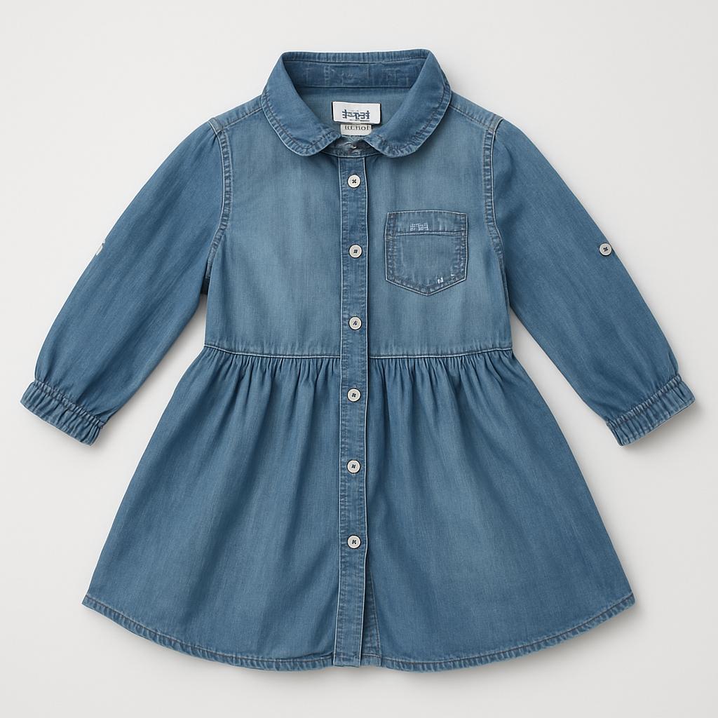 Questo adorabile vestito in denim è un vero tesoro per la tua piccola! Con il suo design classico e il colletto raffinato, è perfetto per ogni occasione. La gonna ampia e svolazzante offre libertà di movimento per giochi e avventure. Il taschino decorato con applicazioni brillanti aggiunge un tocco di scintillio e stile. Nonostante sia usato, si presenta in ottime condizioni, pronto per essere indossato e far brillare il guardaroba della tua bimba. Un capo versatile, ideale da abbinare a collant colorati o sandali!