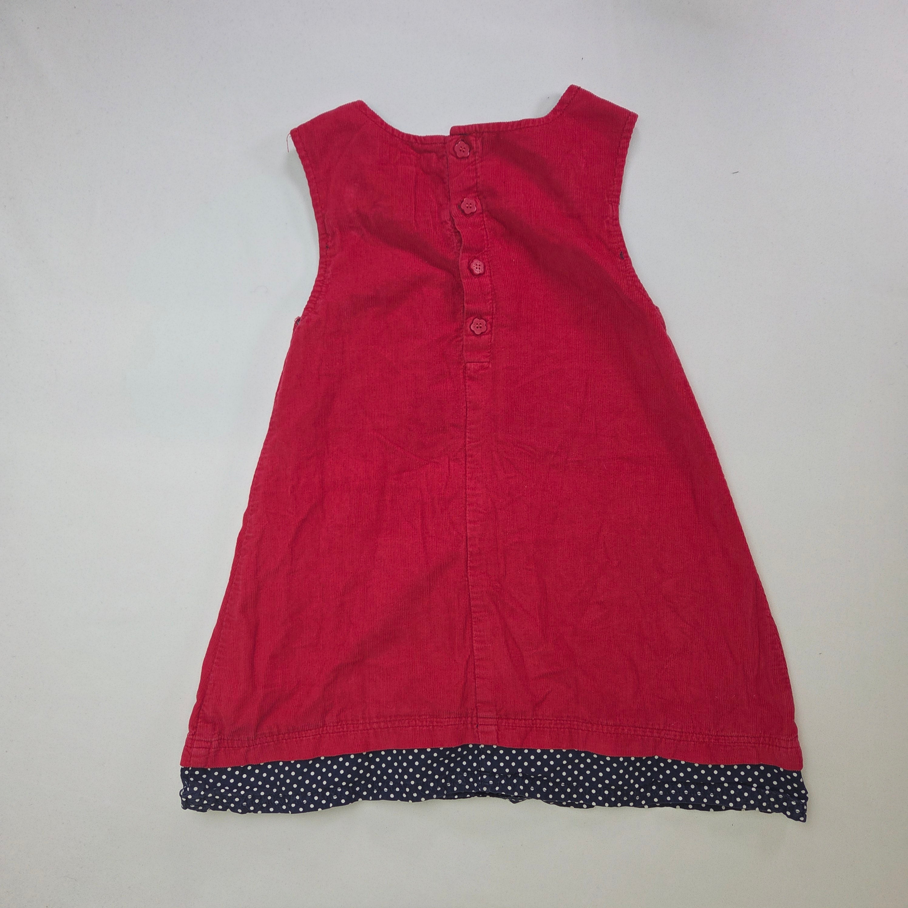 Questa deliziosa e vivace vestitino rosso è un vero tesoro per la tua piccola! Realizzato in un morbido cotone, presenta una graziosa applicazione a forma di uccellino sul lato, che rende ogni passo un momento giocoso. Le adorabili spalline con bottoni aggiungono un tocco elegante, mentre il contrasto con il tessuto a pois blu sulla parte inferiore dà un effetto trendy e simpatico. Nonostante sia usato, il vestito è in ottime condizioni e perfetto per ogni occasione, dalle feste alle uscite quotidiane. Un capo che farà sicuramente sorridere ogni bimba!