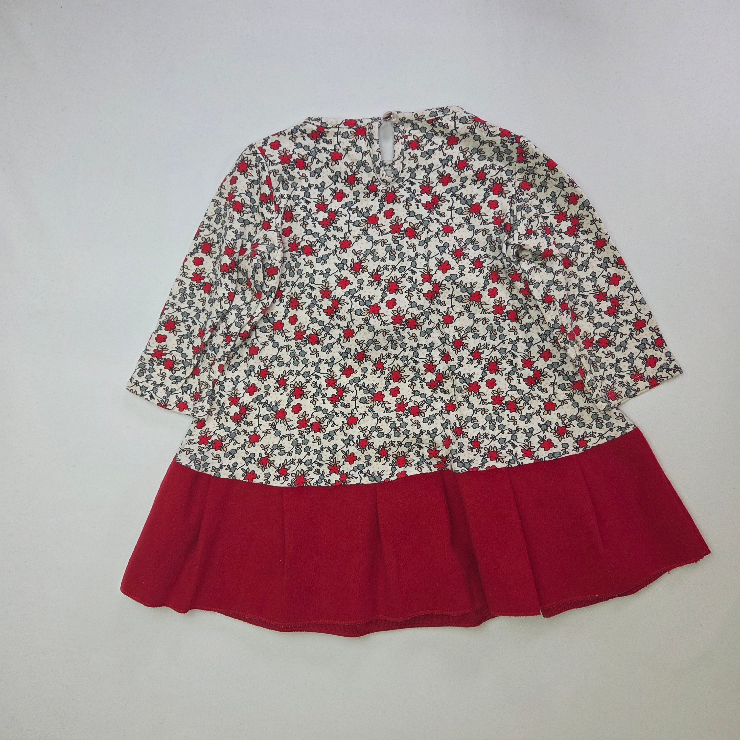 Questo incantevole abito per bambina è perfetto per le piccole fashioniste! Caratterizzato da un delizioso motivo floreale in tonalità pastello, il vestito presenta una parte inferiore in rosso intenso che rende ogni passo un vero capolavoro. La dolce applicazione a forma di cuore in cima aggiunge un tocco giocoso, mentre le maniche lunghe lo rendono adatto per ogni stagione. Facile da indossare grazie alla chiusura posteriore, si presenta in ottime condizioni e con un aspetto adorabile. Un'ottima scelta per feste, occasioni speciali o semplicemente per una giornata di divertimento!