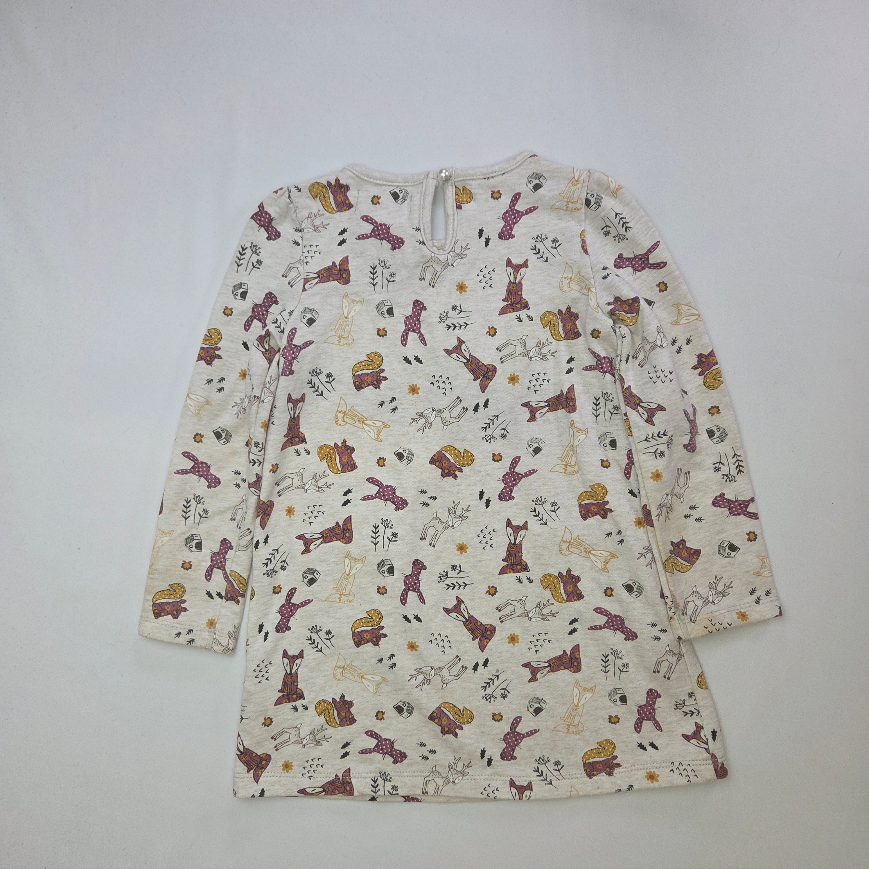 Questo adorabile vestito lungo presenta un delizioso motivo floreale e animale che conquisterà il cuore della tua bimba! Realizzato in una morbida cotone, garantisce comfort e libertà di movimento. I dettagli delle tasche a forma di volpe, decorate con simpatici applicazioni, aggiungono un tocco creativo e giocoso. Le maniche lunghe lo rendono perfetto per le fresche giornate autunnali, mentre il leggero colletto ne migliora lo stile. Anche se indossato, questo vestito si presenta in ottime condizioni, pronto a far brillare il guardaroba della tua piccola esploratrice!