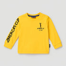 Questa divertente maglietta a maniche lunghe di America Cup è perfetta per i piccoli esploratori! Realizzata in morbido cotone giallo, regala un tocco di sole a qualsiasi outfit. Confezionata con una raffinata stampa nera e il logo sulla manica, questa maglia unisce comfort e stile. I bottoncini sulle spalle facilitano l'uso e aggiungono un tocco pratico. Nonostante sia un capo usato, è in ottime condizioni e pronta per molte nuove avventure! Un'ottima scelta per ogni giorno o per occasioni speciali!