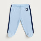 Questi adorabili pantaloni per bambini, firmati da un noto brand, sono un'aggiunta perfetta al guardaroba dei più piccoli! Realizzati in un morbido tessuto di cotone, presentano un grazioso colore azzurro che evoca la freschezza del cielo. Le strisce blu scuro ai lati donano un tocco sportivo e trendy, mentre i dettagli del fondo bianco conferiscono un tocco di originalità.