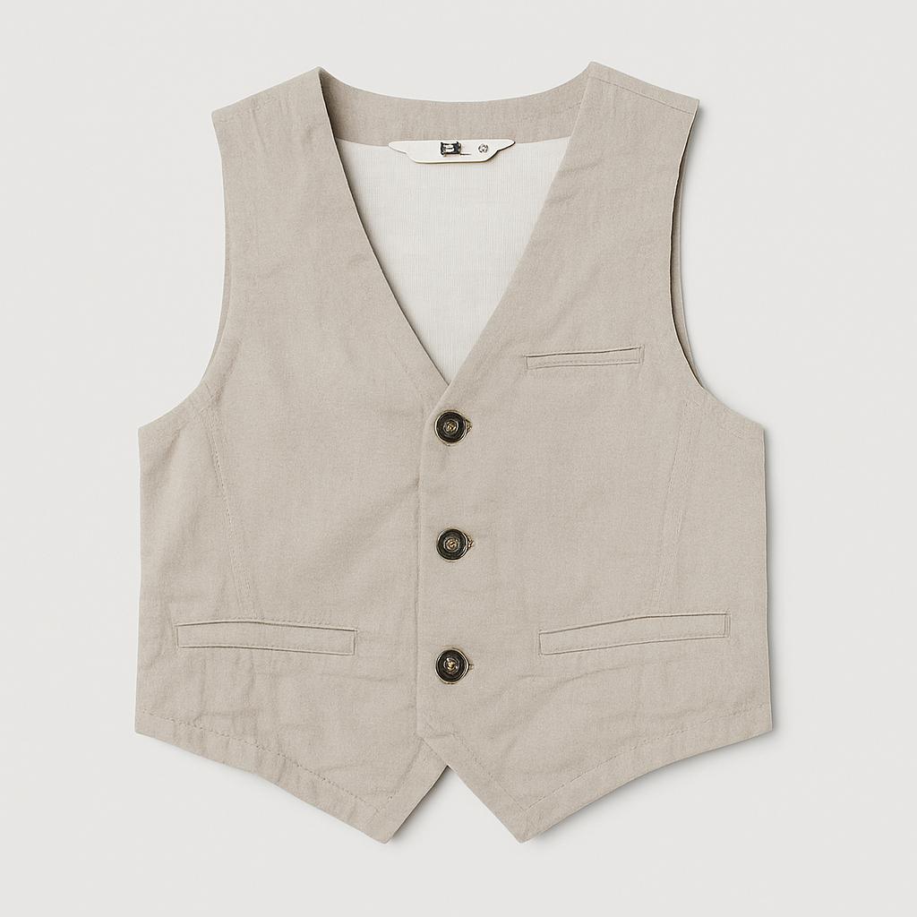 Questo elegante gilet HM in tonalità beige è l'accessorio perfetto per ravvivare ogni outfit del tuo piccolo! Realizzato in un leggero tessuto, offre un comfort ottimale e una vestibilità comoda. Con i suoi caratteristici bottoni in contrasto e il taschino frontale, aggiunge un tocco di classe a qualsiasi look, dalle occasioni speciali ai momenti informali. Nonostante sia usato, è in ottime condizioni e pronto ad accompagnare il tuo bambino in nuove avventure con stile! Un must-have per i piccoli gentleman!
