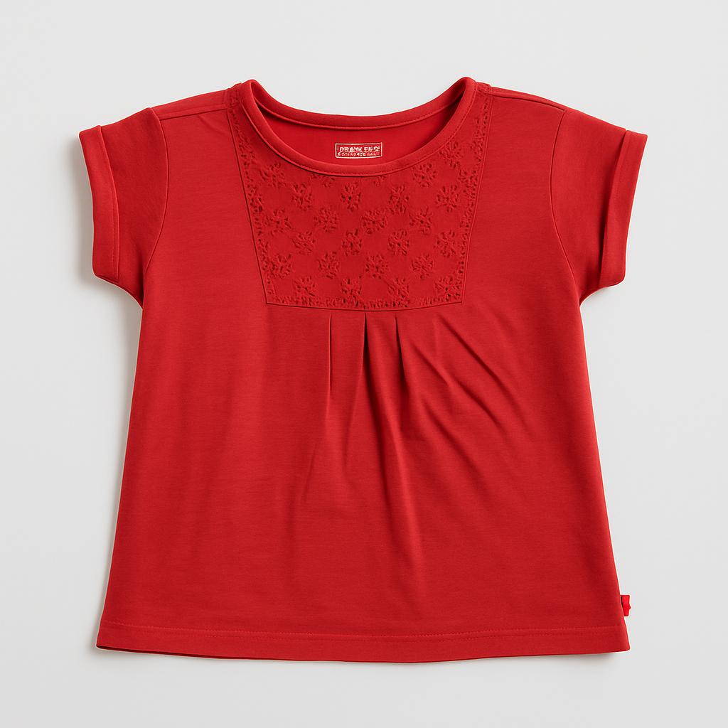 Questa adorabile t-shirt rossa di OVS è perfetta per far brillare il guardaroba della tua piccola! Realizzata in morbido cotone, presenta un delicato ricamo sul davanti che aggiunge un tocco elegante. Con le sue maniche corte e il taglio leggero, è ideale per le giornate estive. Nonostante sia un capo usato, è in ottime condizioni, pronta per accompagnare la tua bambina in avventure e giochi all'aperto. Un must-have versatile e chic per un look fresco e alla moda!