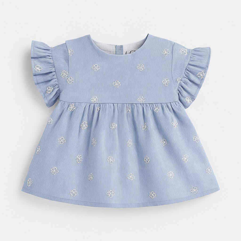 Questa dolcissima blusa a righe blu e bianco è perfetta per le piccole esploratrici! Leggera e fresca, è decorata con graziosi ricami floreali bianchi che donano un tocco romantico e divertente. Le maniche a campana aggiungono un elemento giocoso, rendendola ideale per una giornata al parco o per una festa. Nonostante l'uso, si presenta in ottime condizioni, pronta a regalare momenti di gioia e stile alle tue bambine! Un capo versatile che si abbina facilmente a jeans o gonne per un look chic e spensierato!