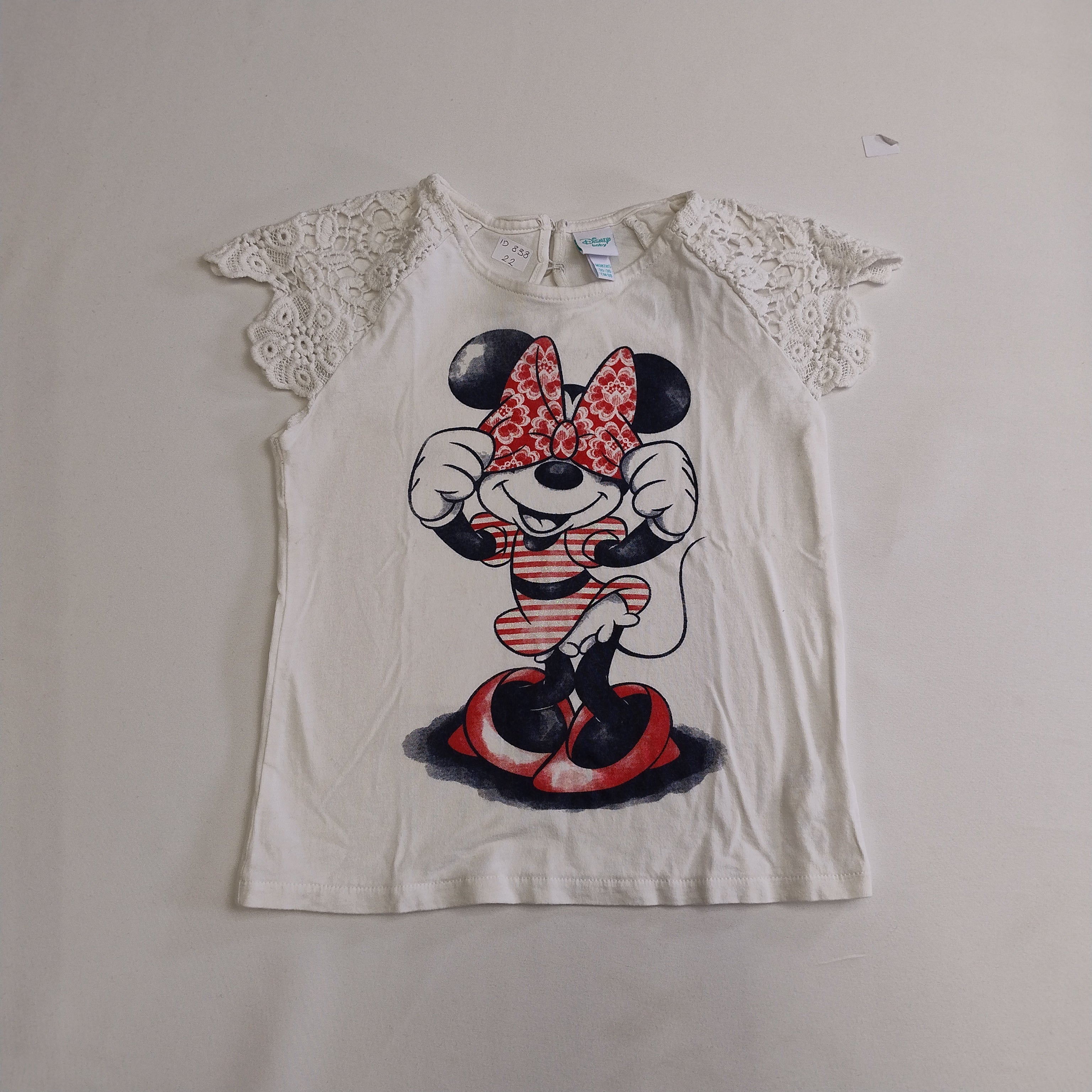 Questo adorabile t-shirt di Minnie Mouse è l'aggiunta perfetta per il guardaroba della tua bambina! Realizzata in morbido cotone, la maglietta vanta un design accattivante con l'iconica Minnie che sorride. Le maniche in pizzo danno un tocco elegante e femminile, rendendo questo capo unico e speciale. Perfetta per le giornate di gioco o per occasioni informali, si abbina facilmente a jeans o gonne. Anche se è un pezzo usato, si presenta in ottime condizioni, pronta per essere indossata da una piccola amante delle favole!