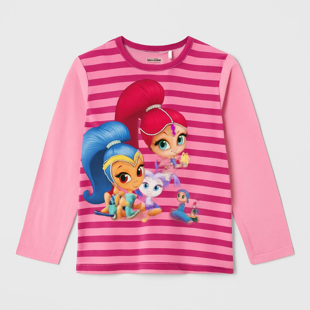 Questa adorabile maglietta a maniche lunghe è perfetta per le piccole fan di Shimmer e Shine! Con un vivace motivo a righe rosa e una stampa colorata delle due magiche ragazzine, ogni giorno sarà un’avventura! Il morbido cotone garantirà comfort, mentre i colori luminosi porteranno allegria nel guardaroba. Ideale per le giornate di gioco o per un look casual, questa maglietta usata si presenta in ottime condizioni, pronta a far brillare il sorriso della tua bambina!
