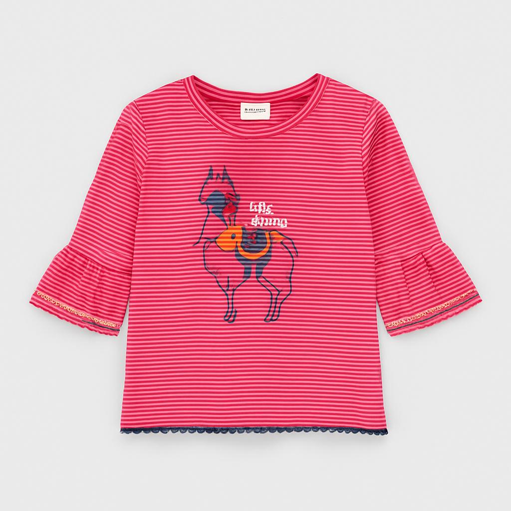 Questa adorabile maglietta a righe rosa è un vero colpo di fulmine per ogni piccola amante della moda! Con maniche a campana e un simpatico ricamo di un lama colorato sul davanti, porta un tocco di allegria e originalità. La bordura nera a pompon rende il look ancora più vivace e giocoso. Perfetta per le giornate di gioco o per una passeggiata al parco, questa maglietta usata è in ottime condizioni e promette comfort e stile. Un capo irresistibile per le piccole fashioniste!