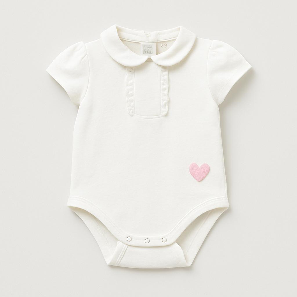 Questo adorabile bodysuit bianco è l'ideale per le piccole principesse! Realizzato in morbido cotone, presenta un delicato colletto e graziose rouches sulla scollatura, perfetta per un tocco di eleganza. Un dolce cuore rosa ricamato sul lato aggiunge un pizzico di tenerezza. Le pratiche chiusure a bottoni sul fondo facilitano il cambio, rendendolo comodo e funzionale. Anche se è un capo usato, è in ottime condizioni, pronto per accompagnare la tua bimba in ogni avventura. Un must-have per il guardaroba di ogni neonata!