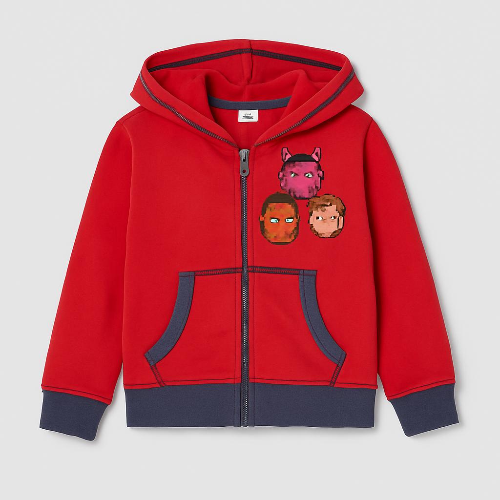 Questa fantastica felpa rossa è l'ideale per i piccoli esploratori! Realizzata in morbido cotone, offre comfort e calore durante le avventure all'aperto. La zip frontale facile da usare e il cappuccio rendono questo capo pratico e alla moda. Sul lato anteriore, tre simpatici animaletti dai colori vivaci aggiungono un tocco gioioso e giocoso. Le maniche lunghe e il bordo in contrasto la rendono perfetta per ogni stagione. Nonostante sia usata, si presenta in ottime condizioni, pronta per nuove avventure! Un must-have per ogni bambino che ama giocare con stile!