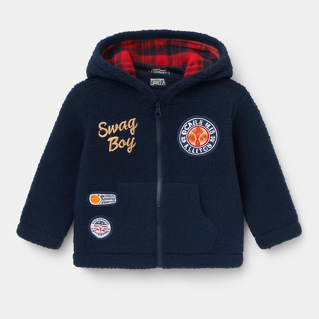 Scopri questo fantastico giubbotto in pile per bambino, perfetto per le avventure quotidiane! Di un elegante blu scuro, offre calore e comfort grazie al suo morbido tessuto felpato. All'interno, una vivace fodera a quadri rossi e neri aggiunge un tocco di stile. Sul fronte, il logo "Swag Boy" e patch colorati raccontano di un'infanzia piena di energia e creatività. Con la sua zip pratica e il cappuccio avvolgente, è ideale per passeggiate nel parco o giochi all'aperto. Un capo usato in ottime condizioni, pronto a far brillare il guardaroba del tuo piccolo!