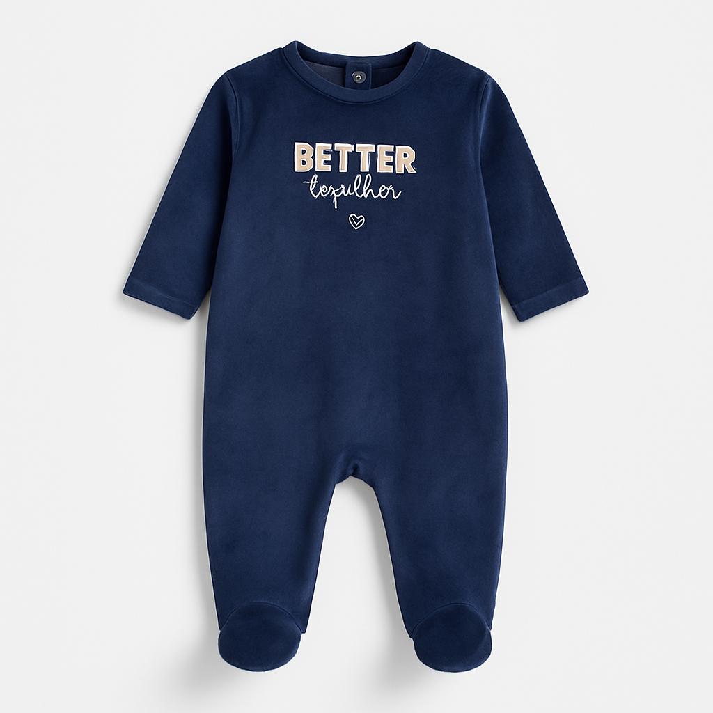 Questo morbido e caldo pigiamino in velluto blu marino è un abbraccio avvolgente per le notti dei tuoi piccoli! Con una dolce scritta "Better Together" sul davanti, trasmette un messaggio di affetto e unità. Le maniche lunghe e il design pratico con piedi integrati garantiscono comfort durante il sonno, mentre il tessuto di alta qualità è ideale per le fresche notti invernali. Nonostante sia un capo usato, si presenta in ottime condizioni, pronto a coccolare il tuo bambino per tante ore di sogni e avventure. Perfetto per una serata accogliente a casa!