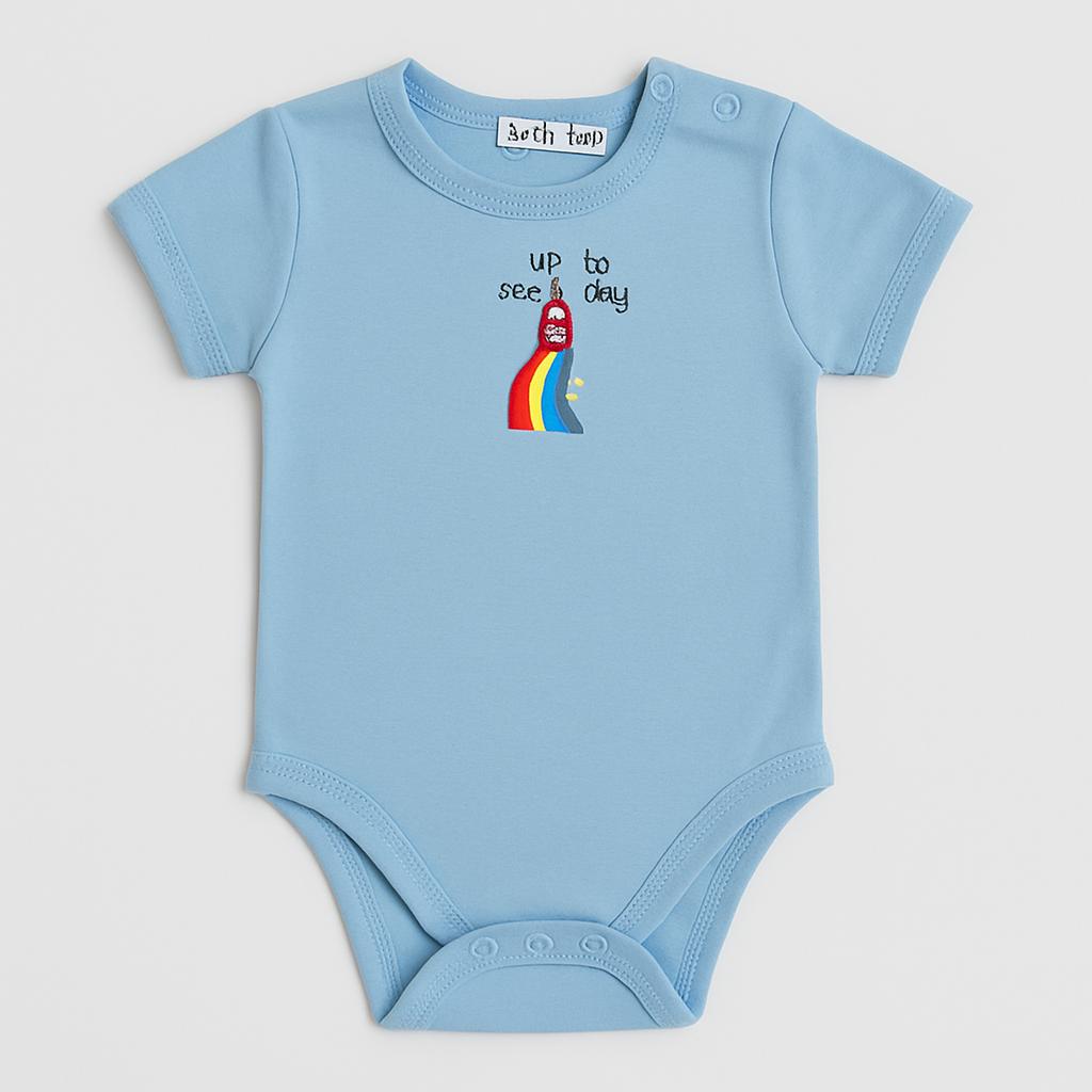 Questo adorabile body azzurro è perfetto per i tuoi piccoli! Realizzato in morbido cotone, offre comfort e freschezza. Sul davanti, una vivace stampa di un simpatico personaggio colorato che dice “Up to the Sky”, porta un tocco di fantasia e gioia. Le maniche corte e le pratiche aperture a pressione rendono facili i cambi. Nonostante sia un capo usato, si presenta in ottime condizioni, ideale per le giornate di sole o per un look trendy in casa. Un must-have per i mini avventurieri che adorano i colori!