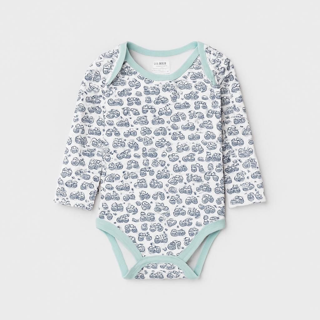 Questo adorabile body a maniche lunghe è perfetto per i piccoli amanti dei motori! Realizzato in morbido cotone, presenta un fantasioso motivo di biciclette e scooter in tonalità di blu e verde su uno sfondo bianco. Le finiture color turchese aggiungono un tocco fresco e trendy. Comodo e pratico, è ideale per le avventure quotidiane del tuo bimbo, che potrà muoversi liberamente durante il gioco. Nonostante sia un capo usato, si trova in ottime condizioni, pronto per essere indossato da un piccolo esploratore!