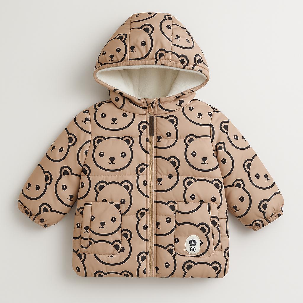 Questo adorabile giubbotto invernale con stampa di simpatici orsetti è perfetto per mantenere caldo il tuo piccolo durante le fredde giornate! Realizzato in morbido materiale imbottito, offre una protezione coccolosa e accogliente. La sua tonalità beige, impreziosita dall'adorabile design, aggiunge un tocco di tenerezza e gioia al guardaro di ogni bambino. Con cappuccio e pratiche tasche, è ideale per avventure all'aperto, giochi sulla neve o passeggiate in famiglia. Sebbene usato, è in ottime condizioni e pronto a regalare sorrisi! Un must per ogni mini esploratore!