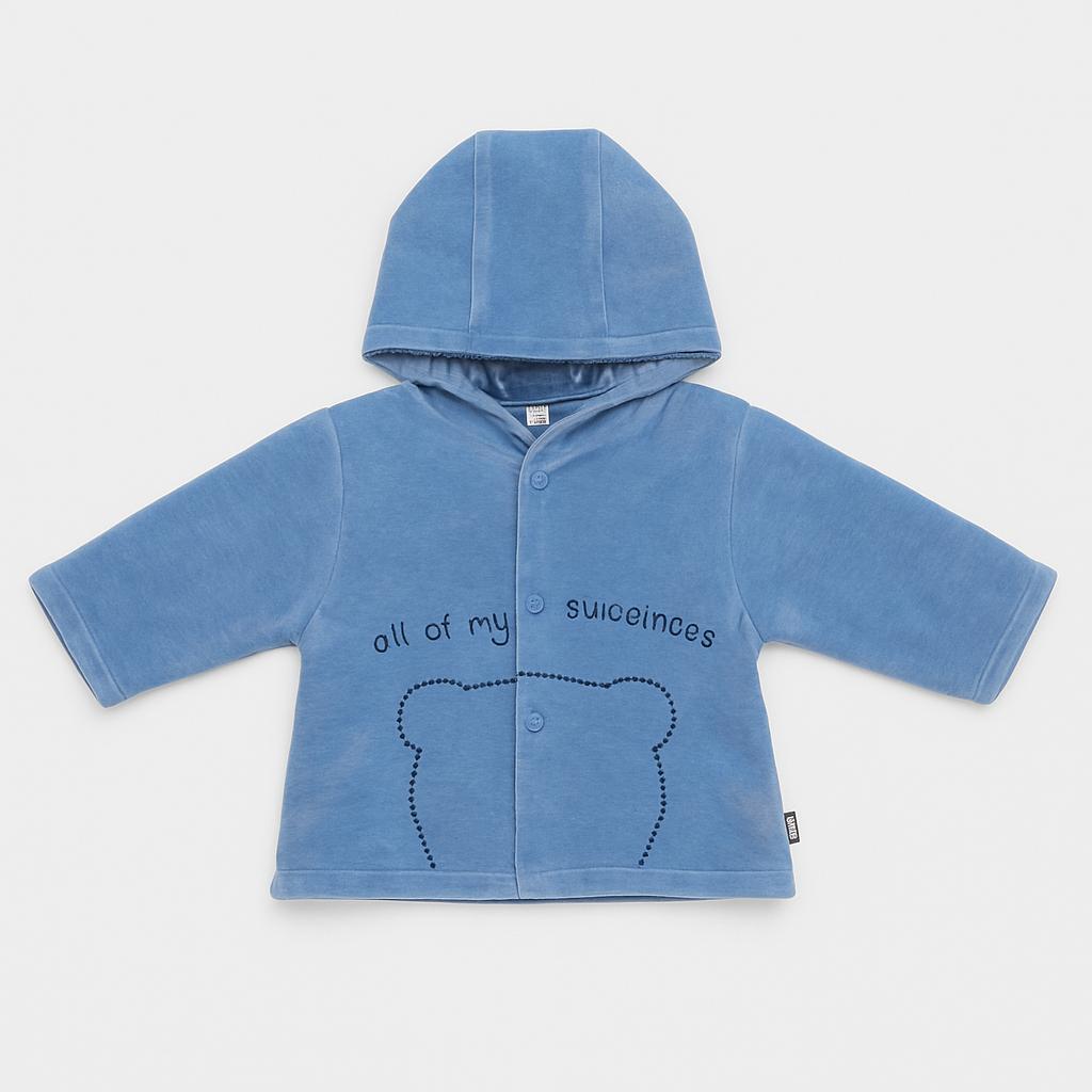 Questo adorabile giubbotto azzurro, perfetto per i più piccoli, è l'ideale per tenere caldi i bimbi nelle fresche giornate. Con un morbido tessuto e un'accattivante cappuccio, porta un messaggio affettuoso "all of my sweetness" ricamato sul davanti. Il design presenta una delicata silhouette di un orsetto, rendendolo ancora più giocoso e carino. Le maniche a sbuffo offrono comfort e libertà di movimento, rendendolo perfetto per ogni avventura! Nonostante sia un capo usato, si presenta in ottime condizioni, pronto a coccolare il tuo piccolo nel massimo dello stile. Un must-have per i piccoli esploratori!