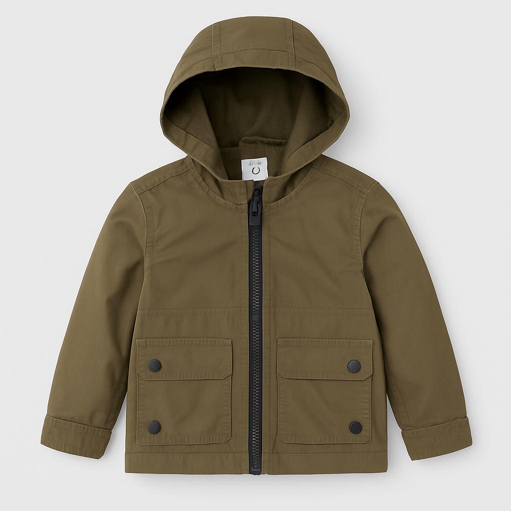 Questa giacca leggera in un elegante tono oliva è perfetta per le avventure all'aperto dei più piccoli! Realizzata con un materiale resistente, è dotata di una comoda cappuccio e chiusura con zip, ideale per le giornate ventose. I pratici taschini anteriori offrono spazio per riporre tesori e segreti. Nonostante sia un capo usato, si presenta in ottime condizioni, pronto ad accompagnare il tuo bambino in ogni esplorazione. Un must-have per un look trendy e funzionale!