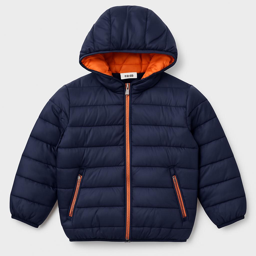 Questa giacca trapuntata di colore blu scuro è il perfetto alleato per le giornate fredde! Con un taglio comodo e una calda imbottitura, la giacca è dotata di una pratica cappuccio per affrontare il vento. La chiusura con zip arancione aggiunge un tocco di vivacità e divertimento al look. Ottima per avventure all'aperto o semplicemente per andare a scuola, si presenta in buone condizioni. Un capo essenziale per i piccoli esploratori che non vogliono rinunciare a comfort e stile!