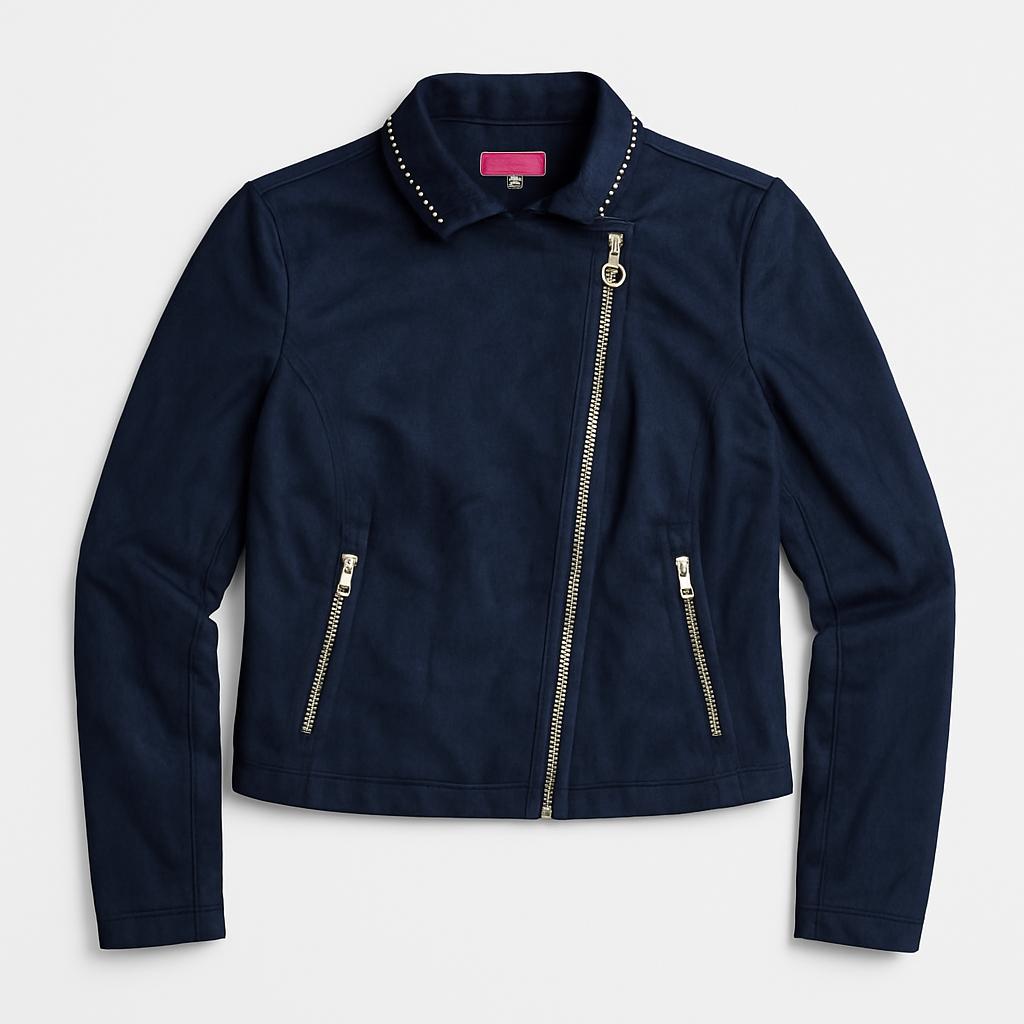 Questa elegante giacca in morbido camoscio blu navy è il capo perfetto per le piccole che amano un look audace e alla moda! Con il suo design affusolato e la chiusura a zip laterale, offre stile e comfort in ogni occasione. I dettagli scintillanti sulla colletto rendono questa giacca ancora più speciale, mentre le tasche laterali aggiungono un tocco pratico. Nonostante sia un capo usato, si presenta in ottime condizioni, pronto a trasformare il guardaroba delle giovani fashioniste in un vero trionfo di stile! Un must-have per coronare ogni outfit!
