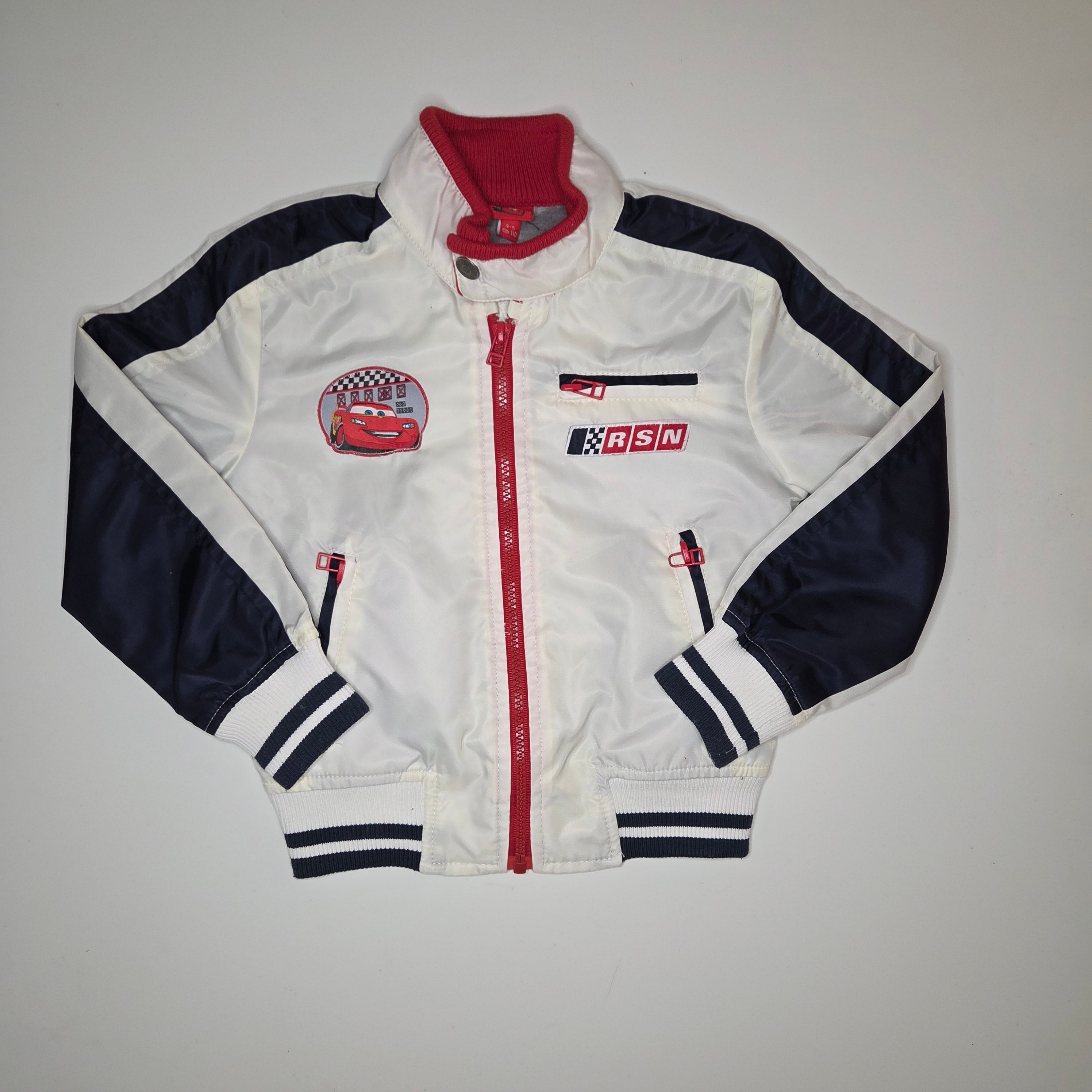 Questa fantastica giacca di Cars farà sognare ogni piccolo fan dei motori! Realizzata in tessuto leggero e resistente, presenta un vivace design bianco e blu, arricchito da dettagli rossi. Sul fronte, troneggia un adorabile ricamo di Saetta McQueen che porterà un sorriso sul volto di ogni bambino. Le maniche lunghe e il colletto alto garantiscono comfort e calore durante le avventure all'aperto. Nonostante sia un capo usato, è in ottime condizioni e pronto per nuove corse! Perfetta per i piccoli esploratori che desiderano un look sportivo e divertente!