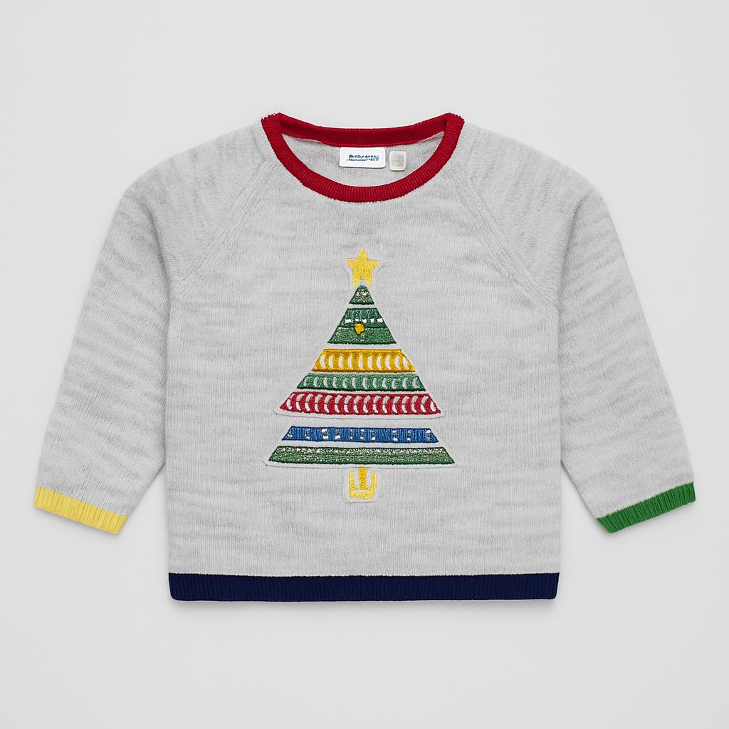 Questo adorabile maglione di marca Molo è perfetto per le feste invernali! Realizzato in un morbido cotone, presenta un elegante motivo a maglia grigia con un fantastico albero di Natale ricamato sul fronte. Le maniche lunghe e il colletto a coste colorate (rosso, giallo e verde) rendono il pullover non solo caldo, ma anche super trendy! Nonostante sia un capo usato, si presenta in ottime condizioni e porterà sicuramente un sorriso sul volto del tuo bambino, ideale per festeggiare con stile e comfort. Un must-have per le piccole stelle del Natale!