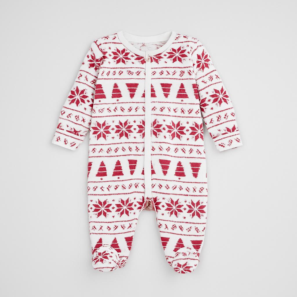 Questo adorabile pigiama a maniche lunghe è perfetto per le notti invernali! Realizzato in morbido cotone, presenta un dolce motivo natalizio con alberi di Natale e fiocchi di neve in delicate tonalità di rosso. La chiusura a zip e i piedini garantiscono comfort e calore durante il sonno. Nonostante sia un capo usato, è in ottime condizioni, pronto per accompagnare dolci sogni ai più piccoli. Un must-have per le notti festive!