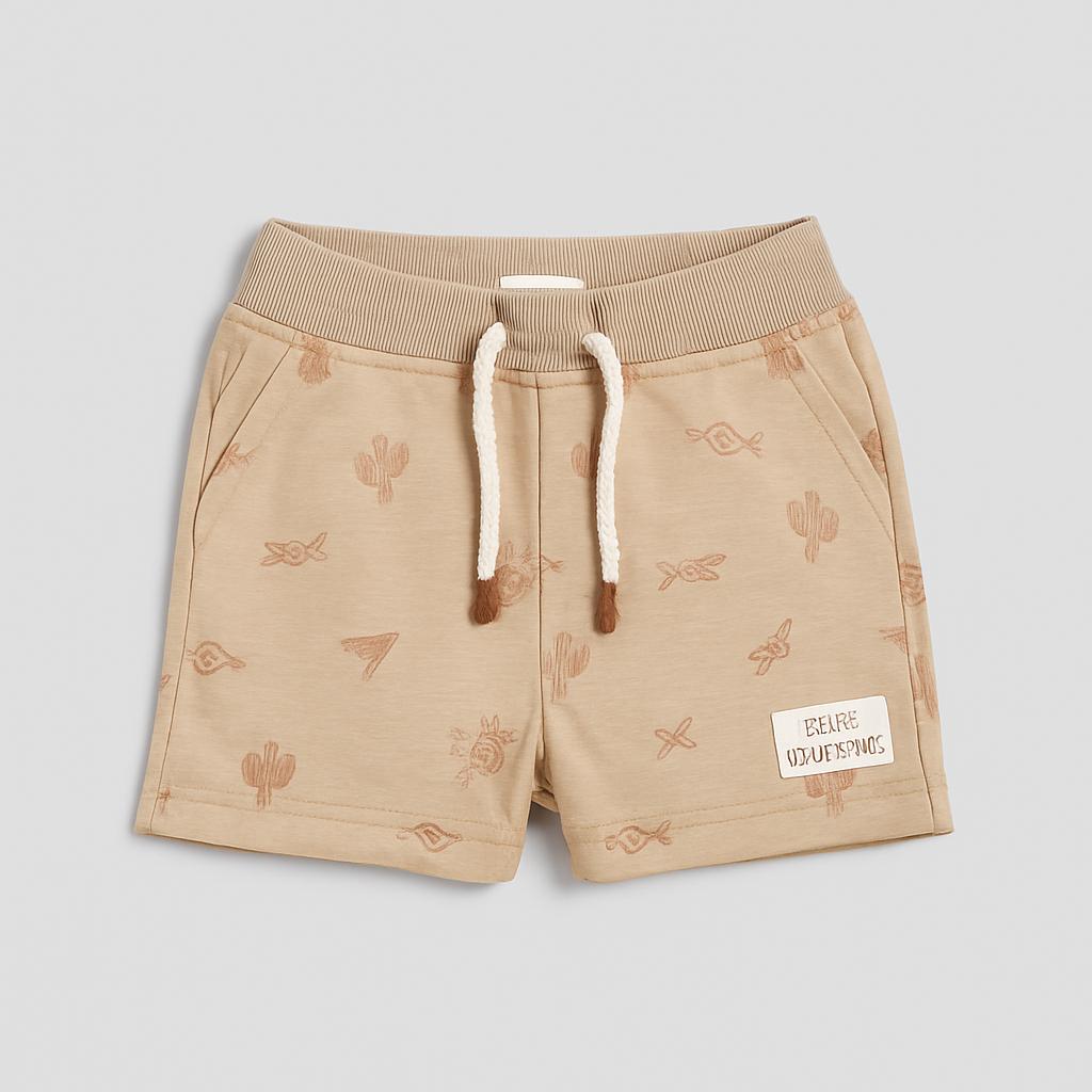 Questi adorabili pantaloni corti beige sono perfetti per accompagnare le avventure estive dei tuoi piccoli! Decorati con un delizioso motivo di cactus e sole, aggiungono un tocco di allegria e originalità. Realizzati in un morbido tessuto, garantiscono comfort e libertà di movimento durante il gioco. La vita elasticizzata con cordoncino rende facile e pratica la vestibilità. Nonostante siano usati, si presentano in ottime condizioni, pronti per essere indossati in spiaggia o al parco. Un capo essenziale per ogni piccolo esploratore!