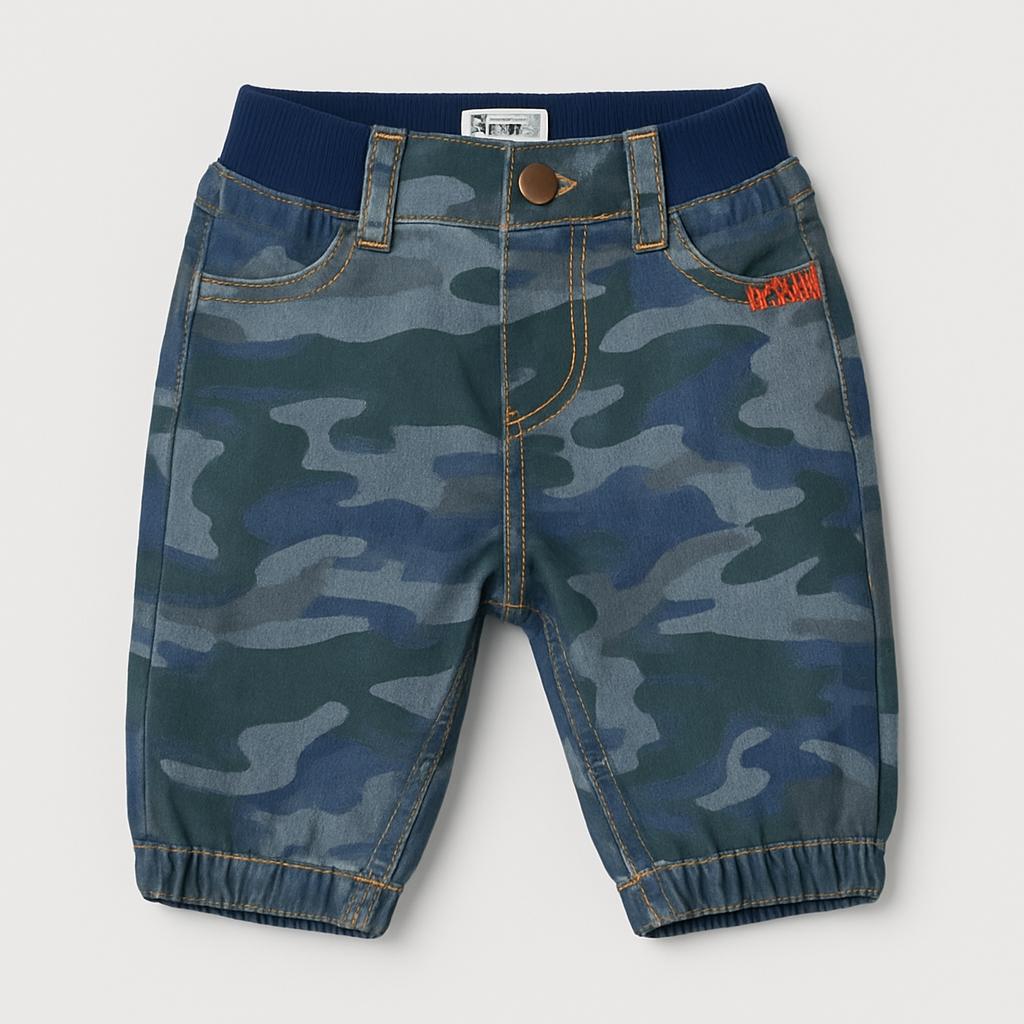 Questi simpatici pantaloni cargo in denim camouflato sono perfetti per i piccoli esploratori! Con un design trendy e avventuroso, presentano una combinazione di blu e verde che si abbina facilmente a molte magliette. La comoda vita elasticizzata garantisce un fit sicuro e confortevole, mentre il tessuto robusto è ideale per le attività all'aperto. Leggeri e facili da abbinare, questi pantaloni usati sono in buone condizioni e pronti a seguire ogni passo del tuo bambino in tutte le sue avventure! Un must-have per un look casual e dinamico!