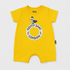 This adorable yellow Cutty Sark onesie is perfect for your little one! Made from soft cotton, it offers comfort and coolness. Featuring a vibrant duck design and a nautical circle, it adds a playful touch. The short sleeves and convenient button closure make it easy to put on and take off. Despite being used, it's in excellent condition, perfect for little explorers and adventurers! A colorful must-have for your summer wardrobe!