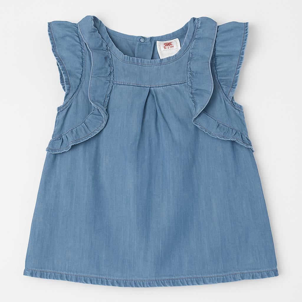 Questo adorabile top di denim è un vero tesoro per il guardaroba delle più piccole! Con il suo delicato tessuto azzurro, emana freschezza e stile. Le maniche a volant aggiungono un tocco romantico e giocoso, rendendo ogni outfit unico. Il design morbido e leggero è perfetto per le giornate estive, garantendo comfort durante le avventure quotidiane. Nonostante sia un capo usato, si presenta in ottime condizioni, pronto a far brillare il look della tua bambina. Questo top è un must-have per le piccole fashioniste!