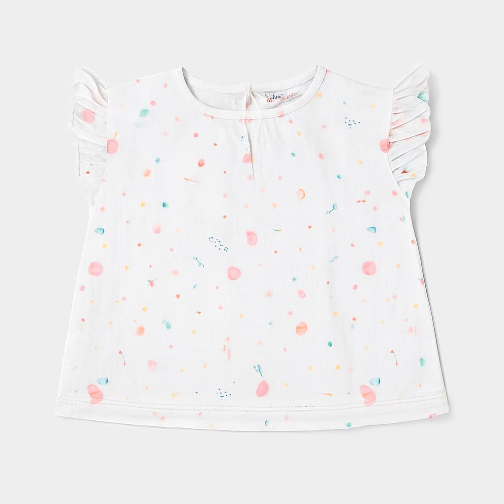 Questa dolce maglietta bianca è perfetta per le piccole sognatrici! Realizzata in morbida cotone, vanta un delicato motivo multicolore che sprigiona vivacità e allegria. Le maniche con rouches donano un tocco romantico e femminile, rendendola ideale per ogni occasione. Facile da abbinare a jeans o gonne, è un capo versatile per il guardaroba estivo. Nonostante sia usata, si presenta in ottime condizioni, pronta a portare un sorriso sul volto della tua piccola! Un must-have per look freschi e giocosi!