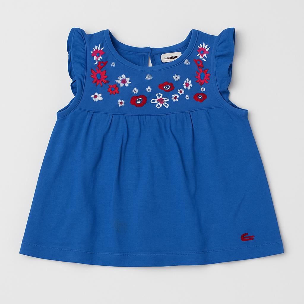 Questa incantevole t-shirt blu è un adorabile vestitino per le piccole creatrici di stile! Realizzata in un morbido cotone, offre comfort e freschezza durante le calde giornate estive. Le graziose maniche a sbuffo e il delicato ricamo floreale sul colletto aggiungono un tocco di dolcezza e femminilità. Perfetta per ogni occasione, dalla visita ai nonni alle avventure nel parco, questa magliettina è in buone condizioni e pronta per essere indossata. Non lasciartela scappare, è un vero tesoro per il guardaroba della tua bimba!