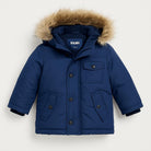 Questo fantastico giubbotto invernale è un indispensabile per i piccoli esploratori! Realizzato in un resistente tessuto blu navy, è perfetto per affrontare freddo e intemperie. Le sue linee pulite e moderne sono esaltate dal morbido cappuccio foderato in pelliccia sintetica, offrendo un tocco di stile e calore. Con pratiche tasche e bottoni frontali, questo capospalla unisce funzionalità e comfort. Nonostante sia usato, è in ottime condizioni e pronto a proteggere il tuo bambino durante le avventure invernali! Un capo che non dovrebbe mancare nel guardaroba dei più piccoli.