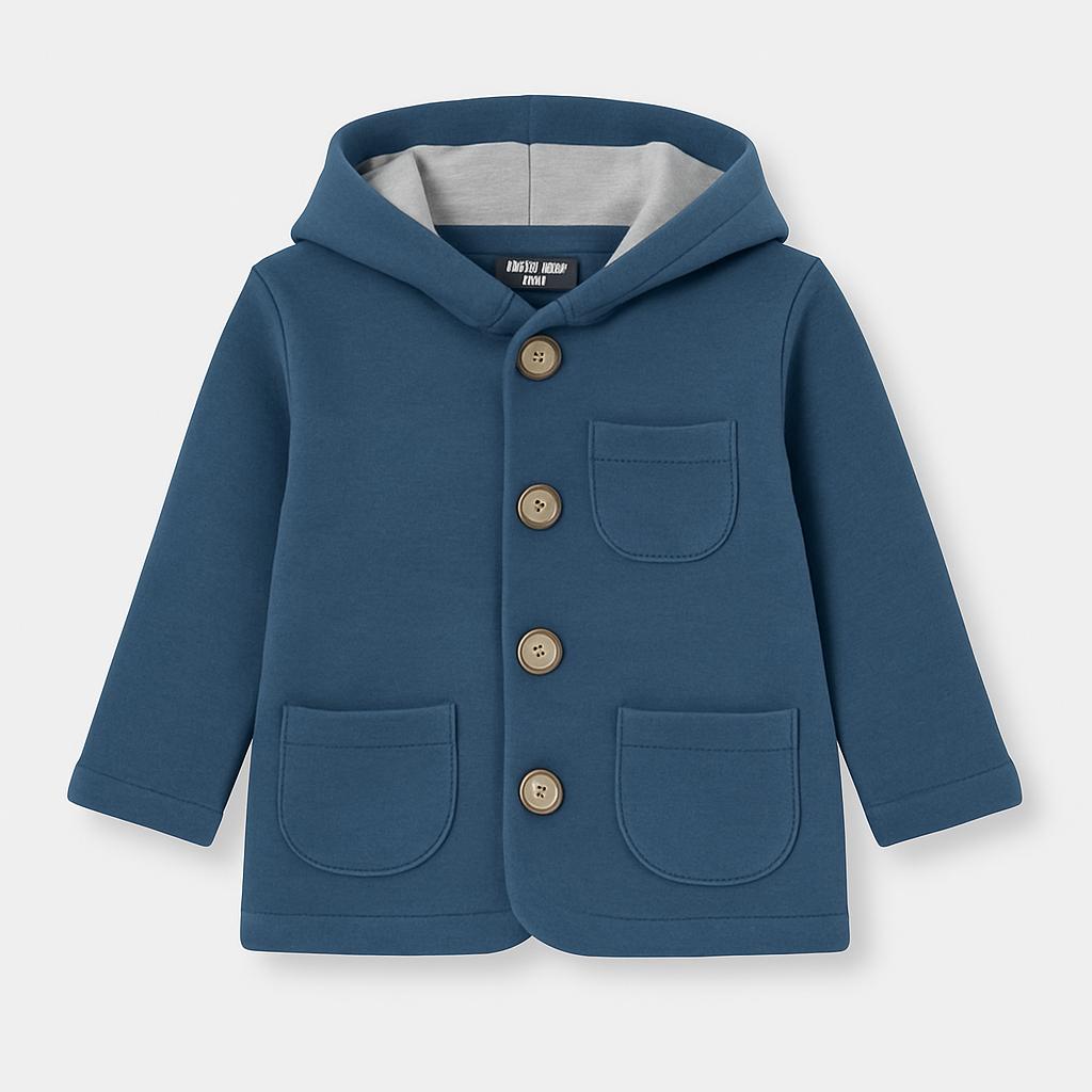 Questo adorabile giacchino in un elegante blu scuro è il compagno perfetto per i piccoli avventurieri! Realizzato in un morbido tessuto, offre calore e comfort, rendendolo ideale per le fresche giornate autunnali. La chiusura con bottoni in legno e le pratiche tasche frontali aggiungono un tocco di stile e funzionalità. Il cappuccio è ideale per proteggere dalla brezza leggera, mentre il rivestimento interno in contrasto regala un pizzico di originalità. Nonostante sia un capo usato, si presenta in ottime condizioni, pronto a rendere ogni outfit unico e accogliente!